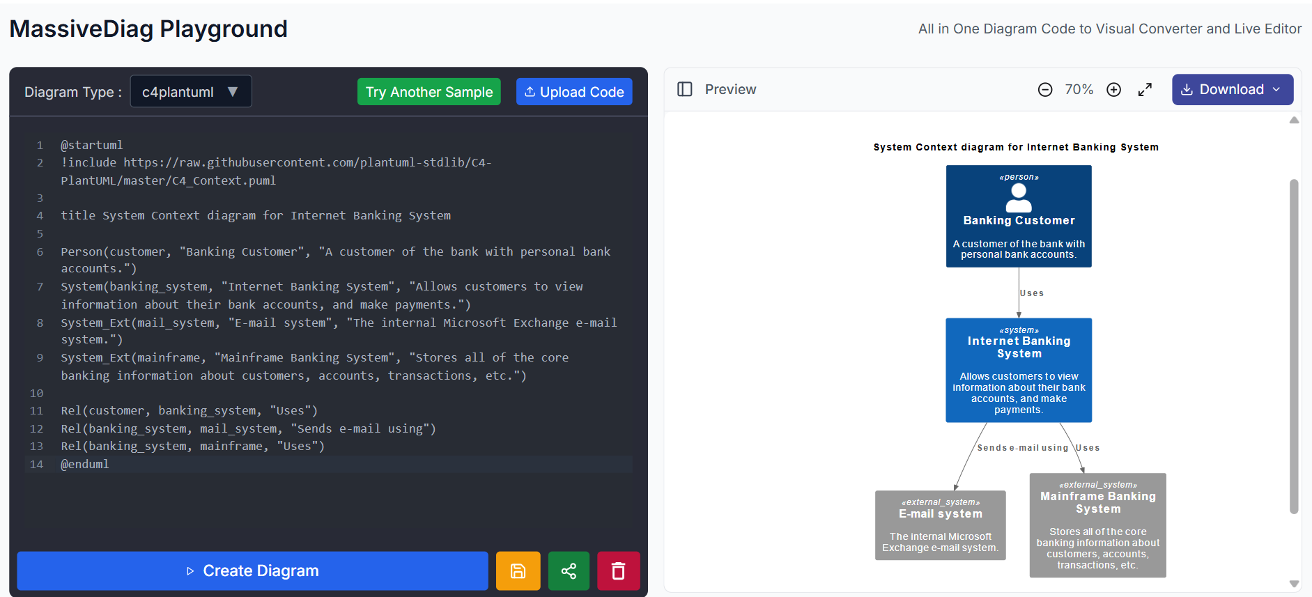 Penampil & Editor Diagram C4: MassiveDiag Playground