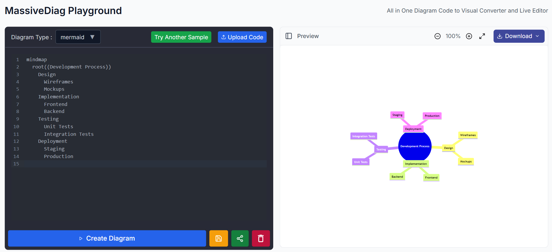 MassiveDiag Playground menyederhanakan seluruh alur kerja diagram Anda.