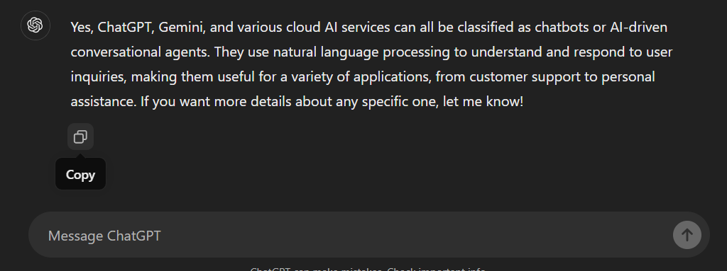 Copy text from ChatGPT Using the copy button.